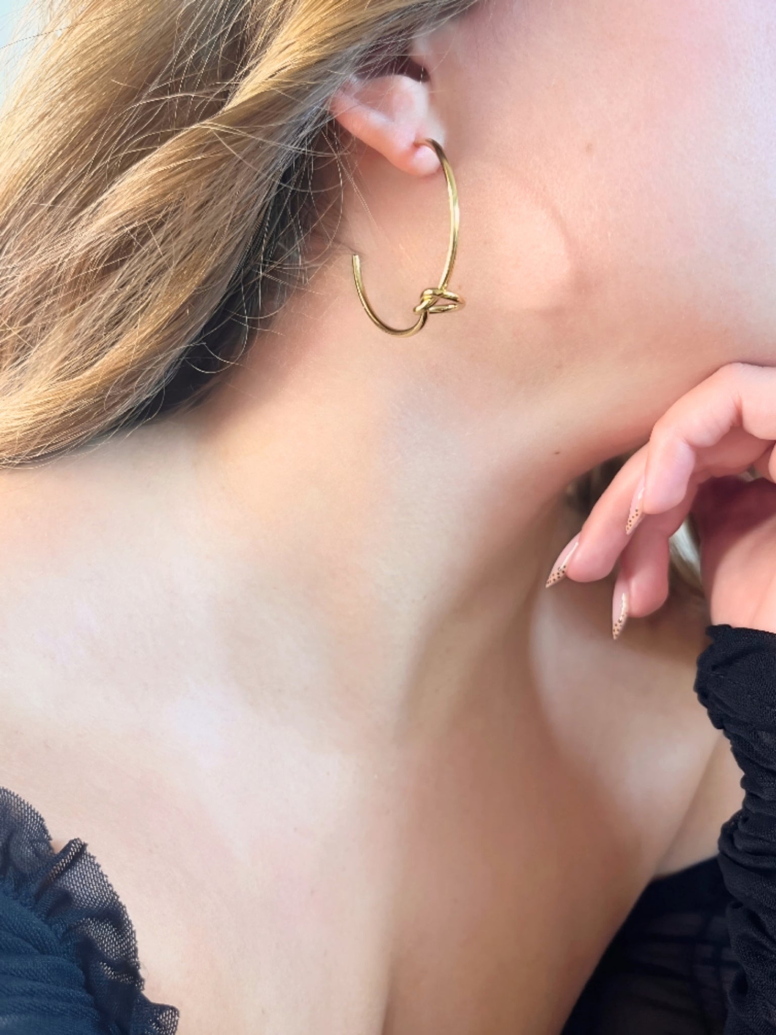 Les boucles d’oreilles Élisa séduisent par leur design de créoles à la fois minimaliste et moderne. En acier inoxydable, elles sont ornées d’un délicat nœud, symbole d’élégance et de féminité. Légères et raffinées, elles se portent aussi bien au quotidien que pour les grandes occasions, apportant une touche chic et subtile à toutes vos tenues.