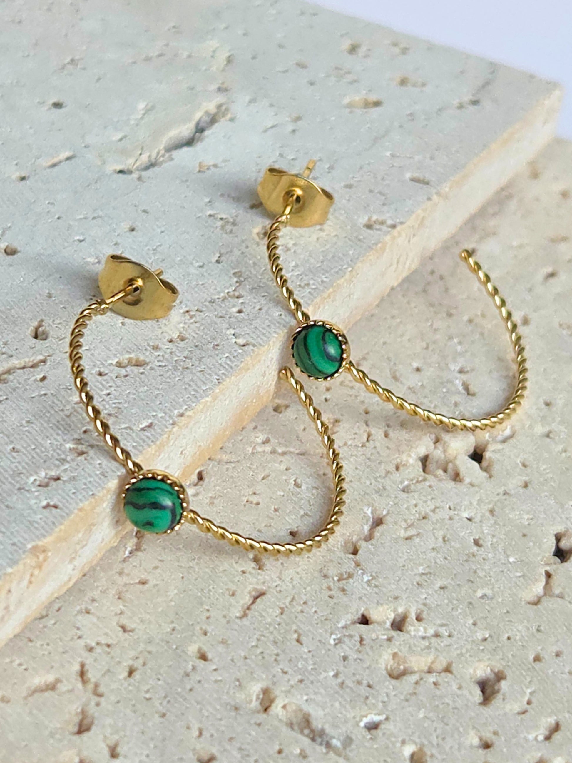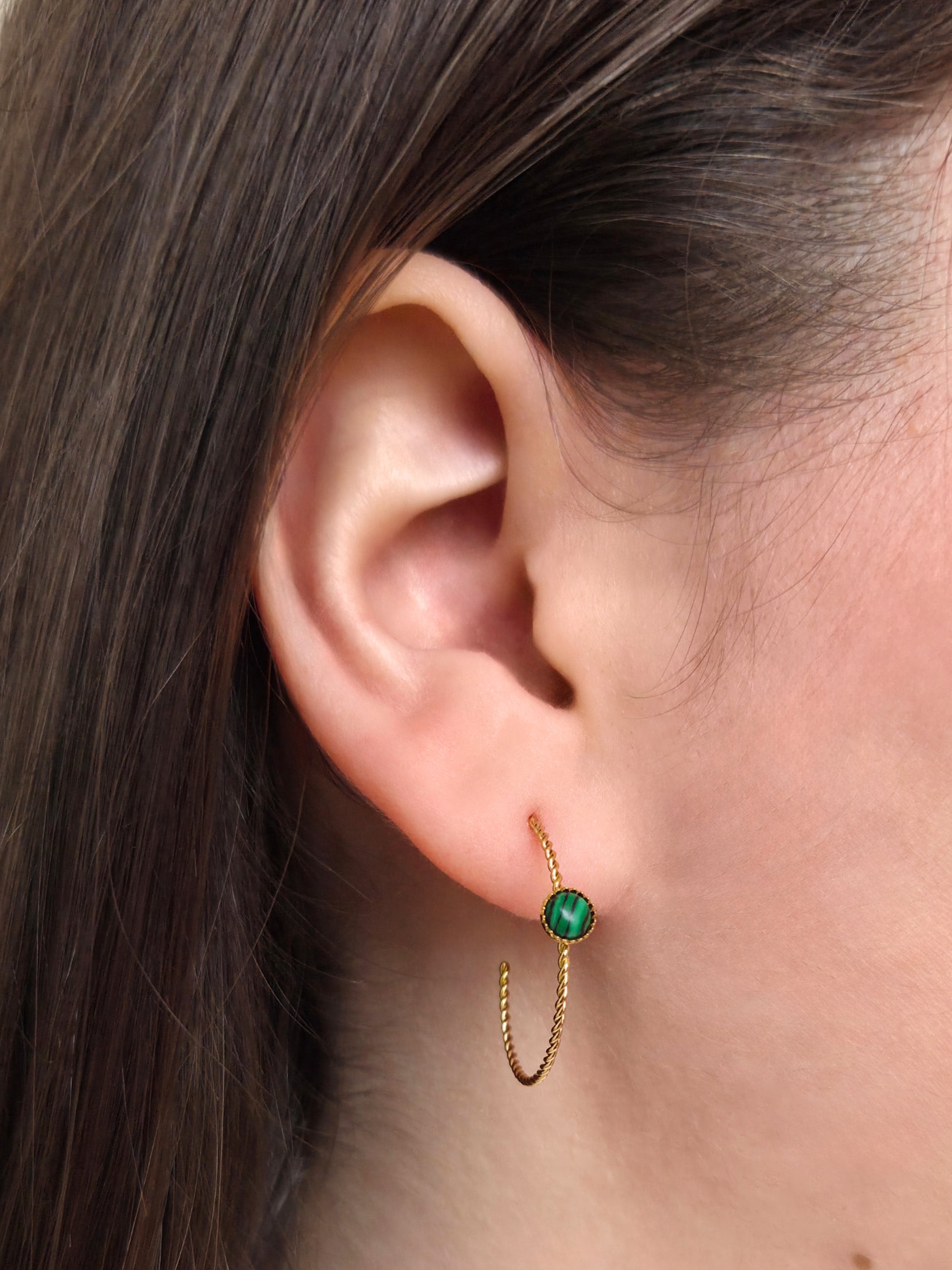 Les créoles Hilona séduisent par leur design discret qui sublime le visage avec subtilité. Avec leur diamètre de taille moyenne, leur finesse et leurs petites pierres vertes délicatement serties, elles apportent une touche bohème et délicate à votre look.