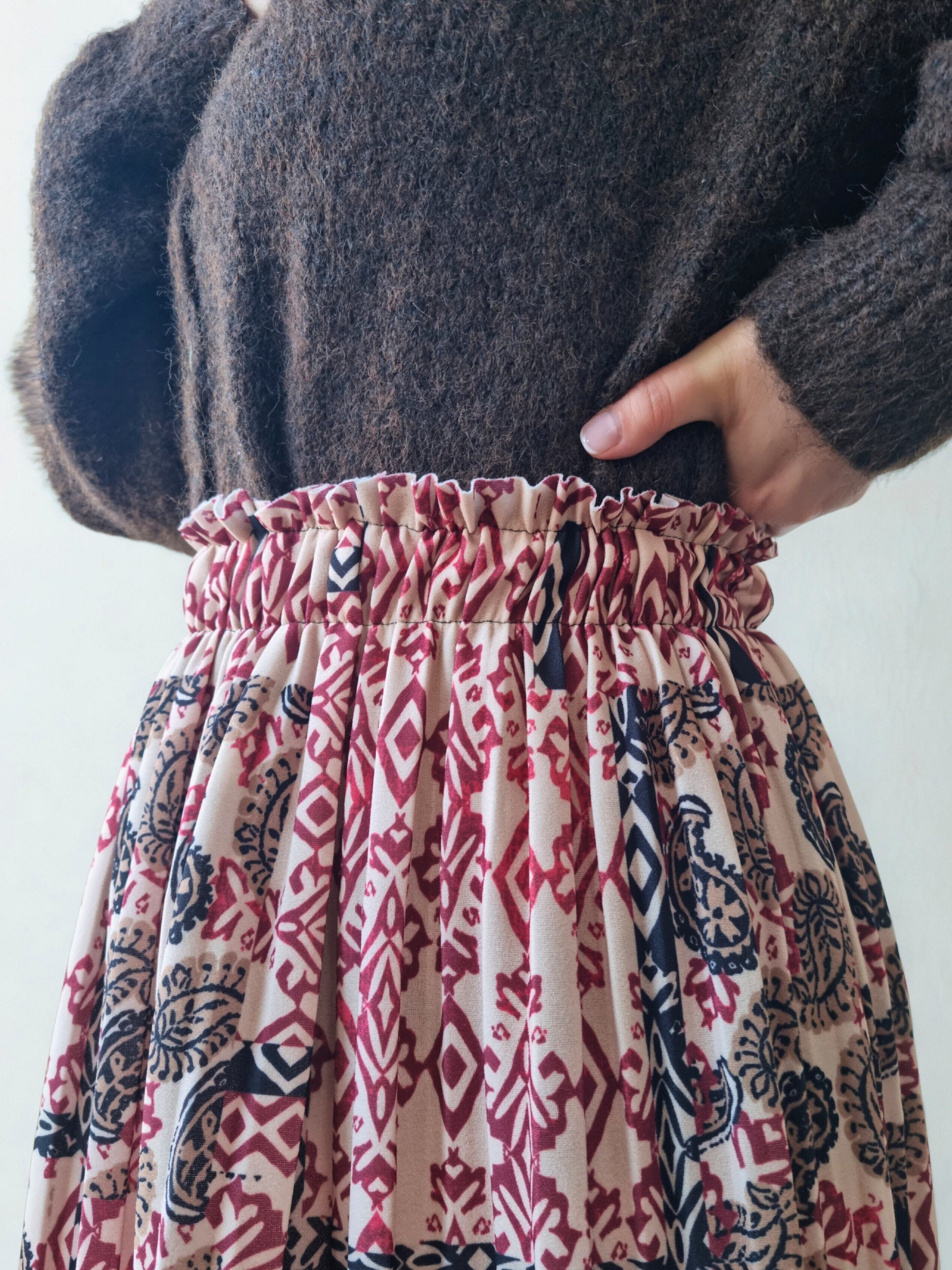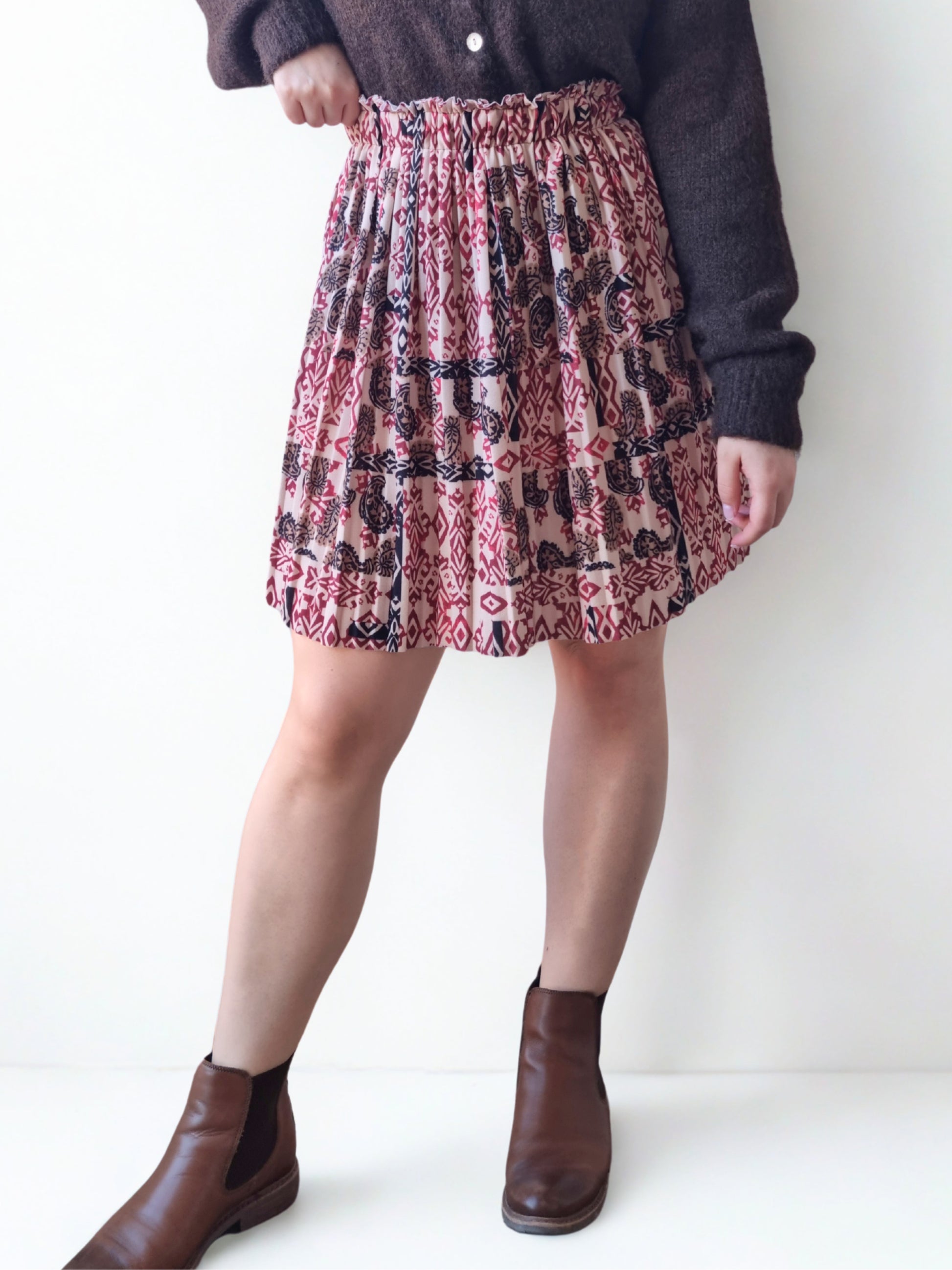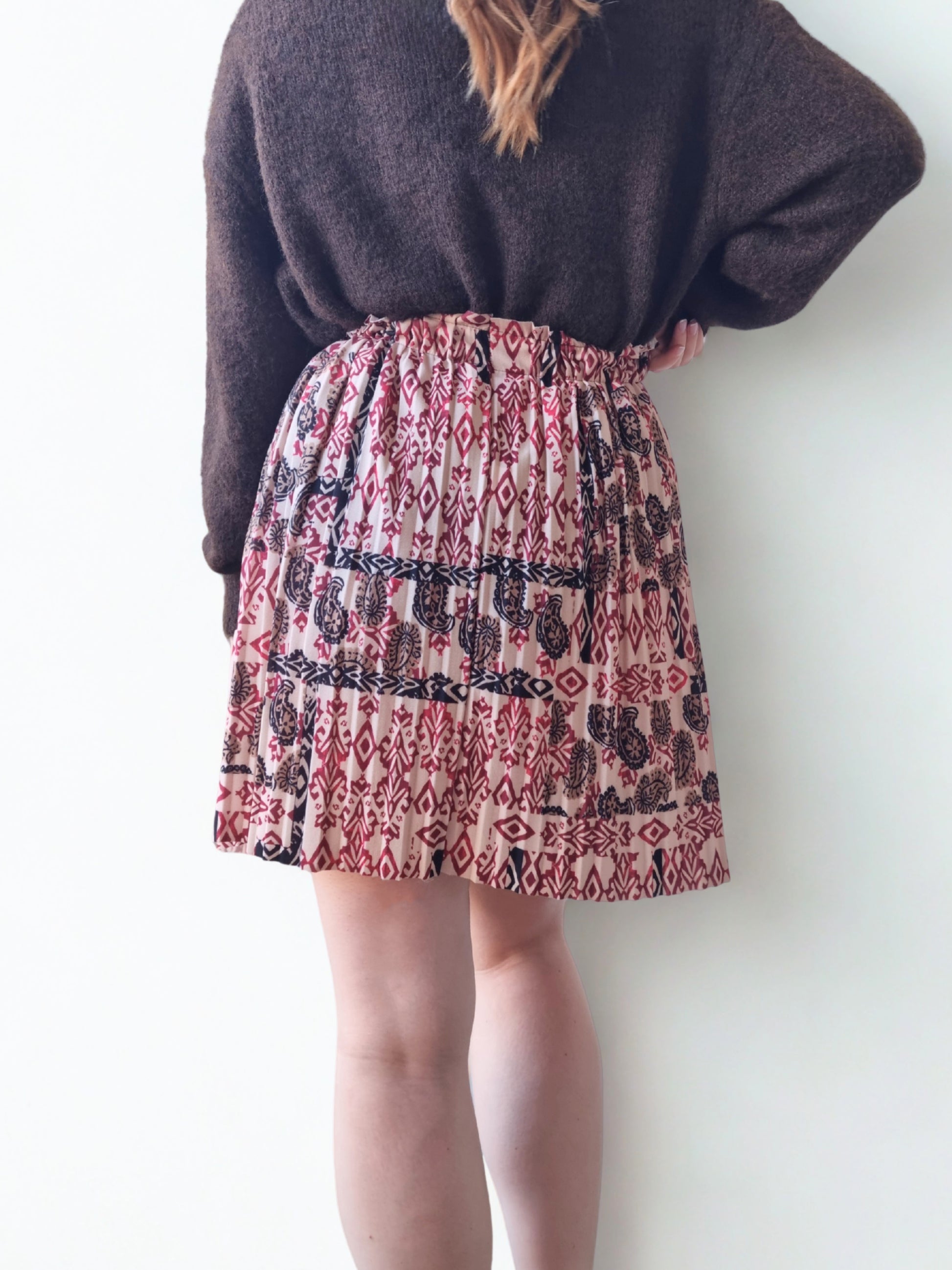 La jupe Jasmine séduit par son imprimé ethnique aux tons chauds qui apporte originalité et caractère à vos tenues. Sa taille smockée élastique assure confort et maintien tout en s’adaptant à toutes les silhouettes. Légère et fluide, elle se porte facilement au quotidien avec un top uni pour la fin de l’été ou avec un gros gilet pour la saison froide.