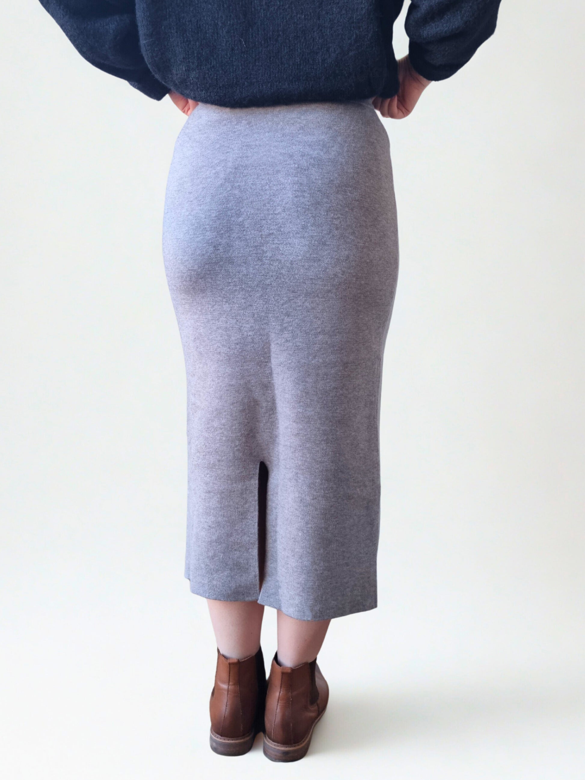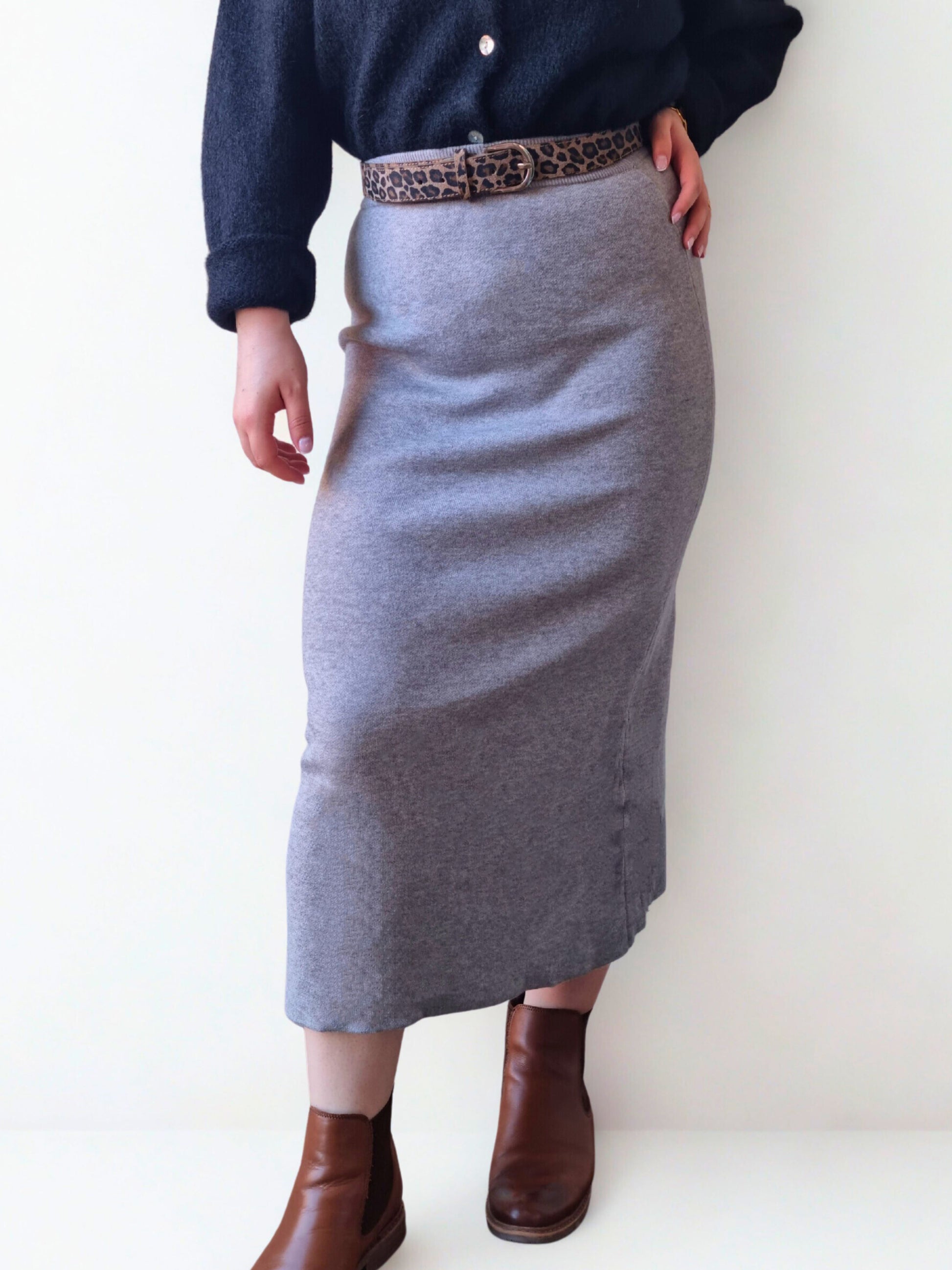 La jupe midi Thaïs grise allie simplicité et modernité avec sa coupe près du corps et son tissu confortable. Sa taille élastique assure un maintien parfait tout en s’adaptant facilement à votre silhouette. Polyvalente, elle se porte aussi bien avec des baskets pour un look casual que des bottines pour un style plus élégant.