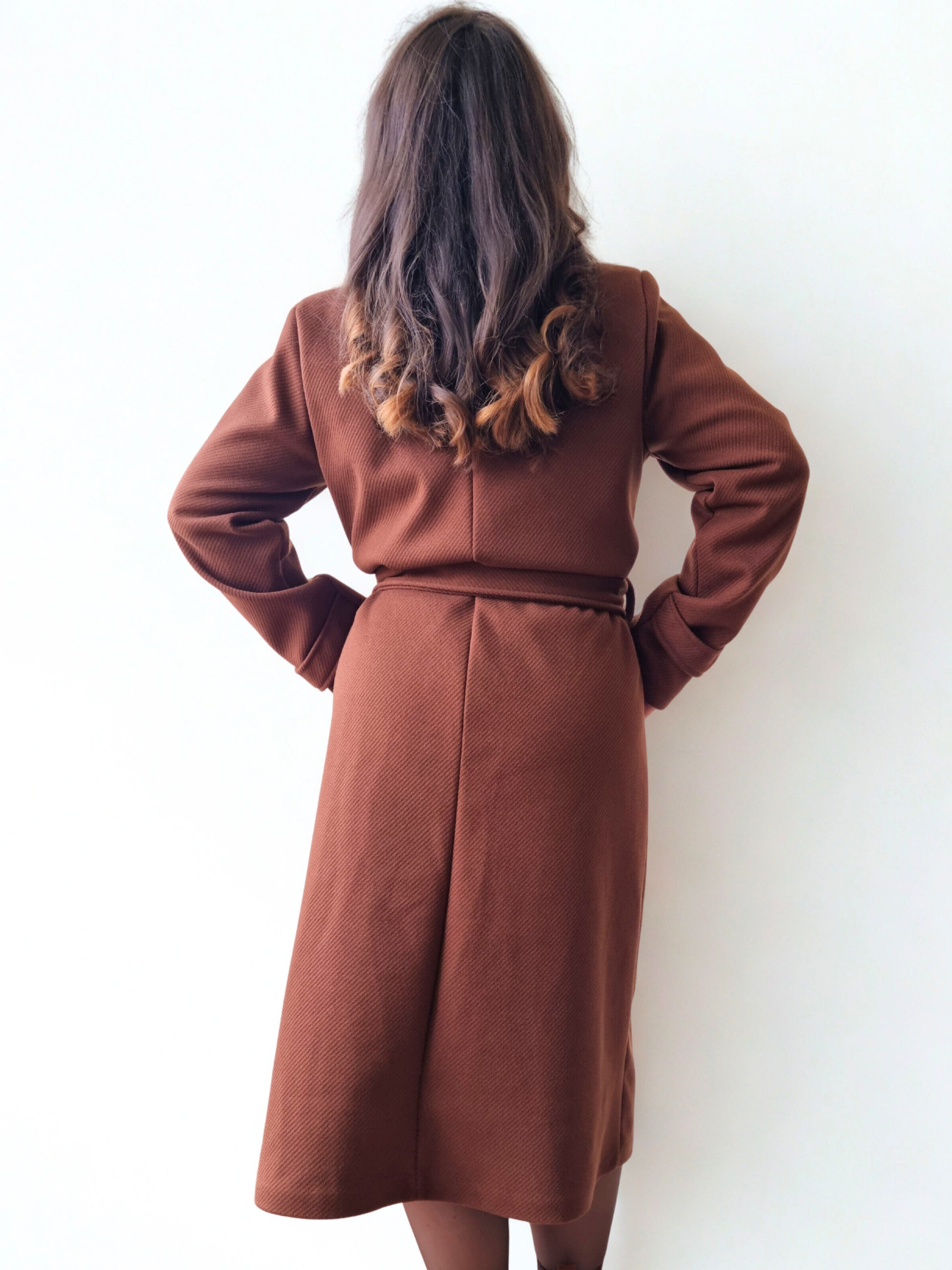 Le manteau Gabrielle, disponible en chocolat ou bordeaux, est une pièce élégante et féminine fabriquée en Italie. Sa coupe longue et fluide est structurée par une ceinture à nouer et un bouton de fermeture, offrant une silhouette chic et raffinée. Entièrement doublé pour plus de confort, il allie chaleur et style, parfait pour sublimer vos tenues d’automne et d’hiver.